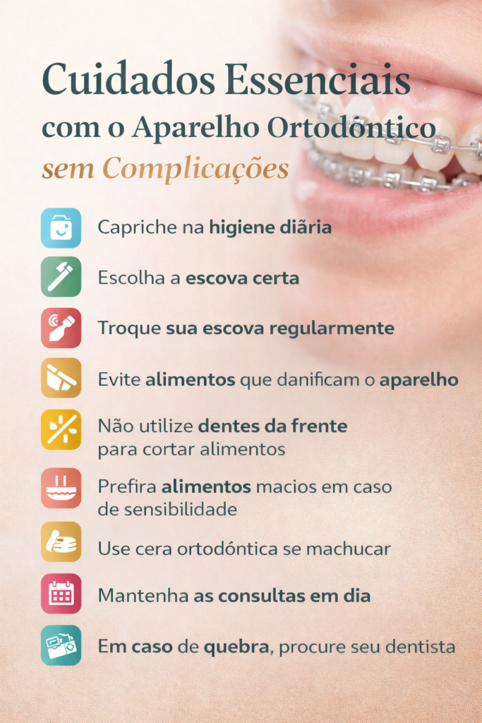 Usar aparelho ortodôntico é um passo importante para conquistar um sorriso mais bonito e saudável. No entanto, para que o tratamento seja eficaz e ocorra dentro do prazo esperado, alguns cuidados diários fazem toda a diferença. Desde a higiene bucal até a alimentação e o acompanhamento profissional, pequenas atitudes ajudam a evitar dores, quebras no aparelho e outros imprevistos. Neste post, reunimos orientações essenciais para que seu tratamento ortodôntico seja tranquilo, seguro e com excelentes resultados.